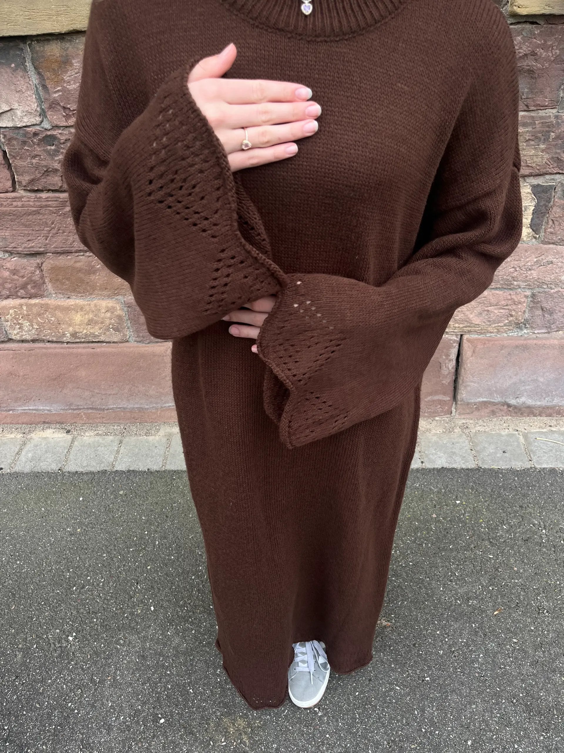 Du suchst ein langes Strickkleid, das sich mühelos stylen lässt? Claire ist die solide Basis für deinen Lagenlook – mit Cardigan, Mantel oder offen getragenen Abayas/Kimonos. Schlichte Optik, klarer Fall, schnell angezogen und vielseitig kombinierbar mit Sneakern, Boots oder Flats.