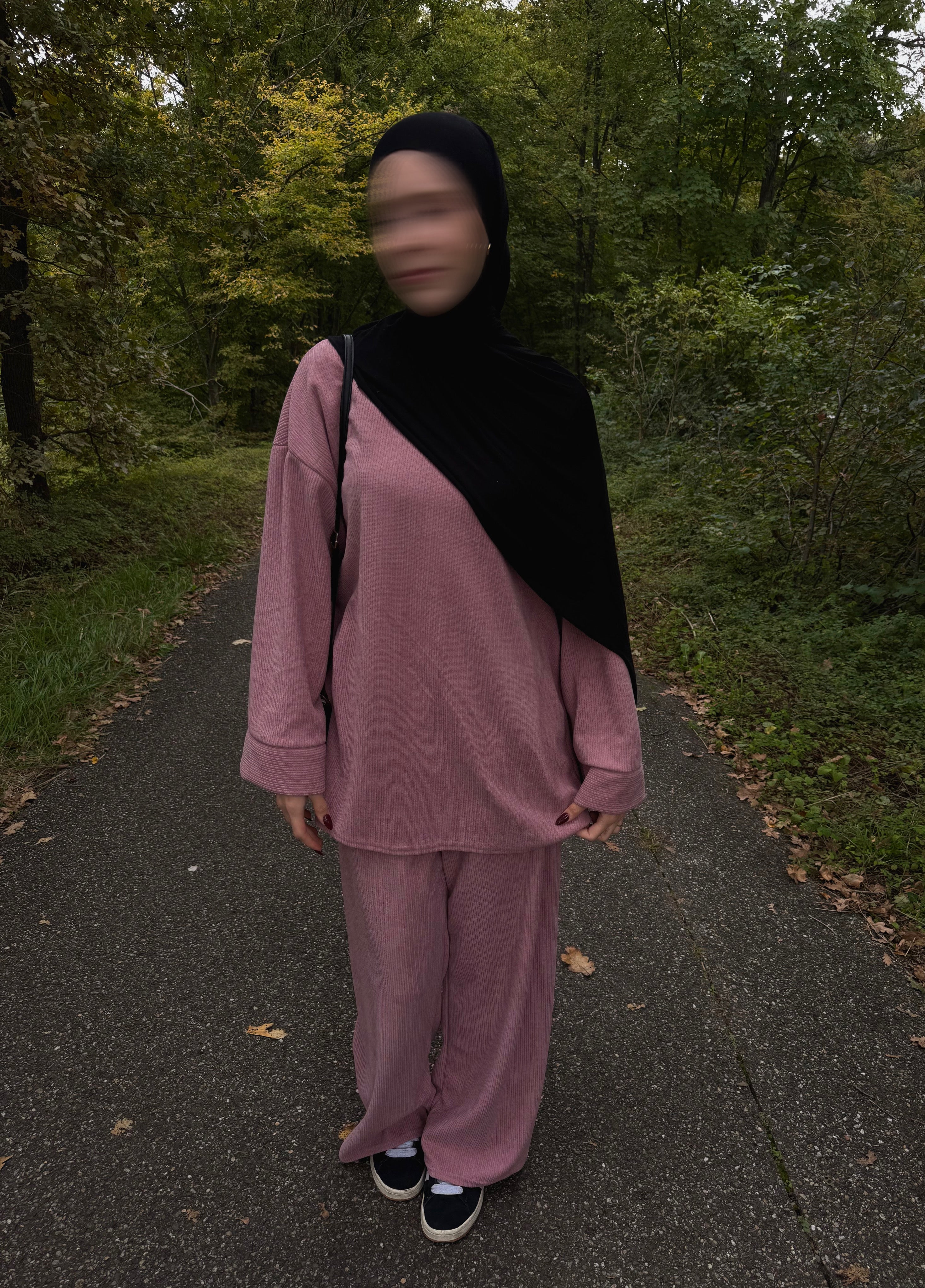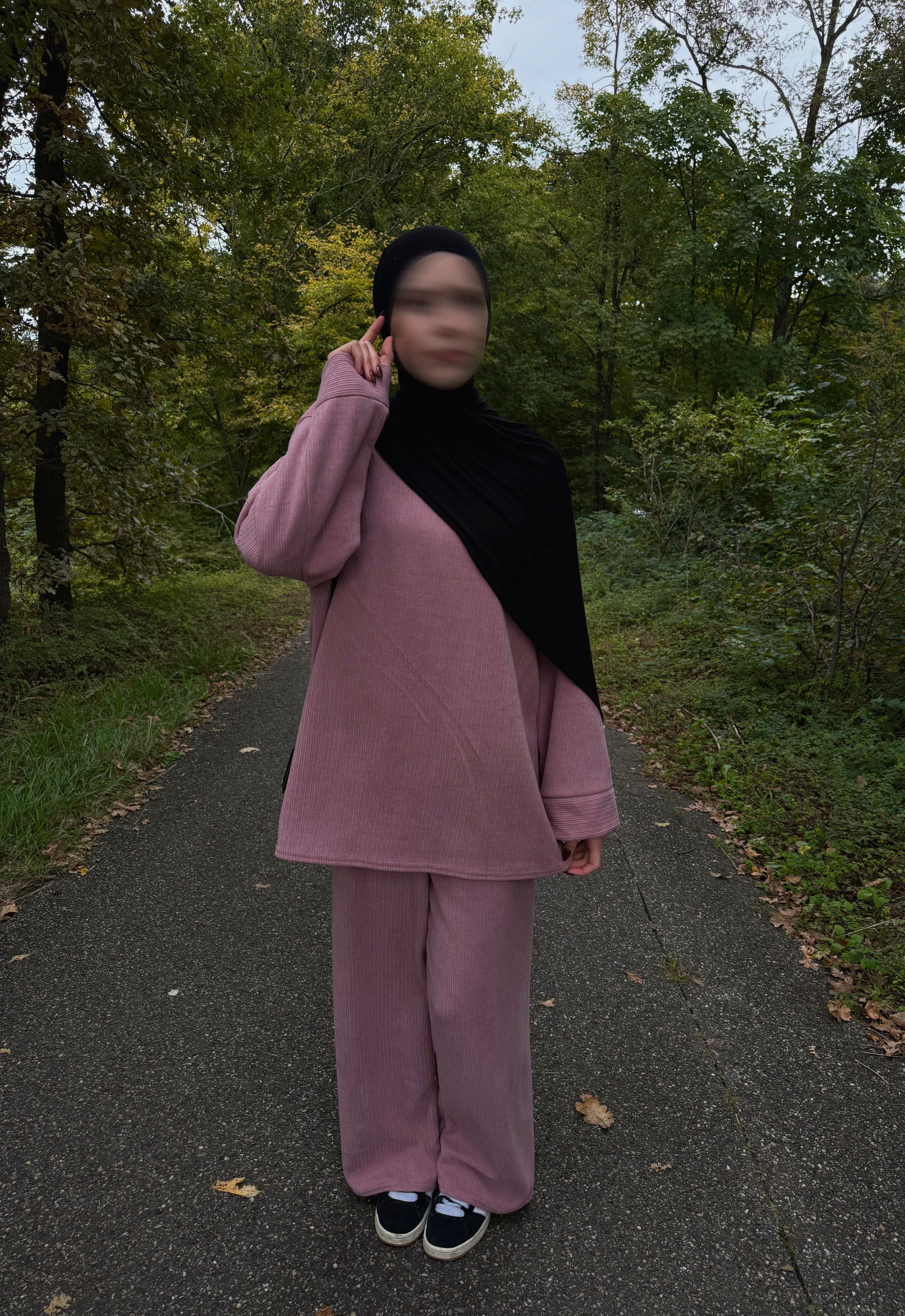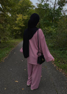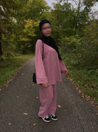 Der Amal Cord Zweiteiler vereint dezente Bedeckung mit entspanntem Komfort. Das Oberteil mit 87 cm Länge bietet eine angenehme, angezogene Silhouette; die Hose ergänzt den Look für Alltag, Büro oder Moschee. Du kannst beide Teile zusammen tragen oder separat mit Basics kombinieren – so entstehen vielseitige Outfits für Herbst und Winter.