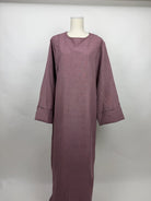 Abayan är ca. 1,45 m lång och kommer i one-size (36–42). Väven i linneoptik ger en naturlig, strukturerad känsla, medan materialet är tåligt. Ett tidlöst plagg för alla som söker en modern Abaya med tydlig linje.